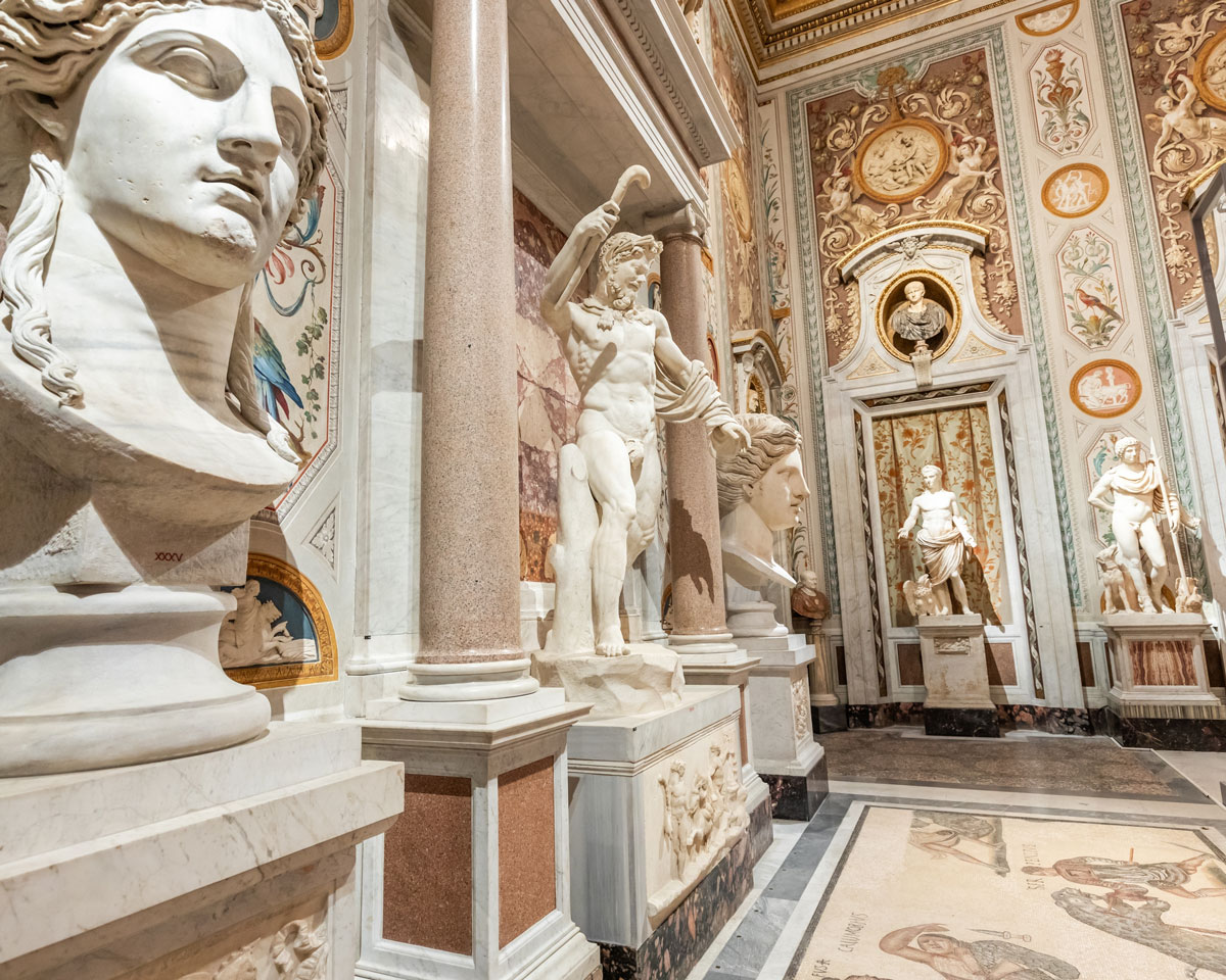 Diese Werke sind nur ein Bruchteil der beeindruckenden Sammlung, die in den 20 kunstvoll gestalteten Räumen der Villa Borghese präsentiert wird.