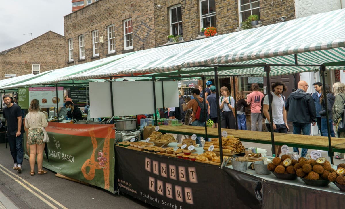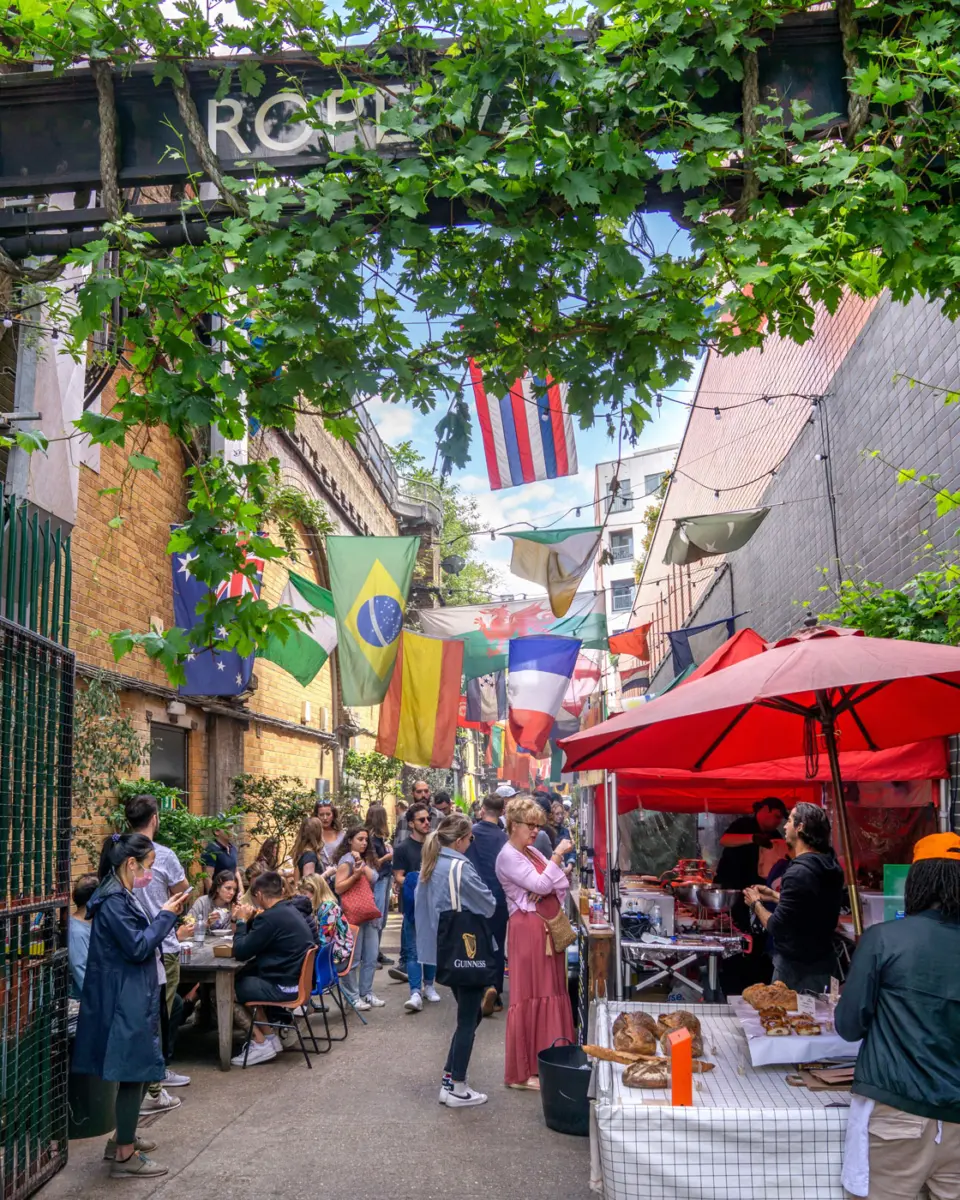 Der Broadway Market im Osten Londons ist ein Paradies für alle, die auf der Suche nach Vintage-Mode, handgemachten Produkten und außergewöhnlichem Street Food sind. Neben den Ständen gibt es viele unabhängige Geschäfte, gemütliche Cafés und Buchläden, die das Viertel besonders charmant machen.
