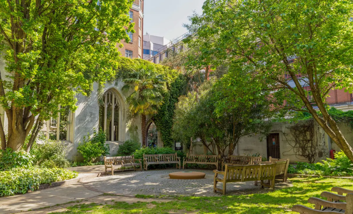 Zwischen der London Bridge und dem Tower of London versteckt sich ein echter Geheimtipp in London: die Ruinen der St Dunstan-in-the-East Kirche. Ursprünglich im Mittelalter erbaut, wurde sie während des Zweiten Weltkriegs stark beschädigt. Statt sie wieder aufzubauen, verwandelte die Stadt die Ruine in einen idyllischen Park. Heute ranken Efeu und Blumen an den alten Mauern empor und schaffen eine magische Kulisse – perfekt für eine kurze Pause vom Trubel Londons.