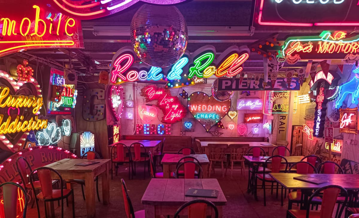 Etwas außerhalb des Stadtzentrums, in Walthamstow, liegt ein Ort, den man so in London nicht erwarten würde: God’s Own Junkyard. Diese surreale Galerie ist eine Sammlung aus bunten Neonreklamen, Vintage-Schildern und skurrilen Kunstwerken. Viele der Leuchtschilder wurden in berühmten Filmen verwendet, und die Atmosphäre ist absolut einzigartig.