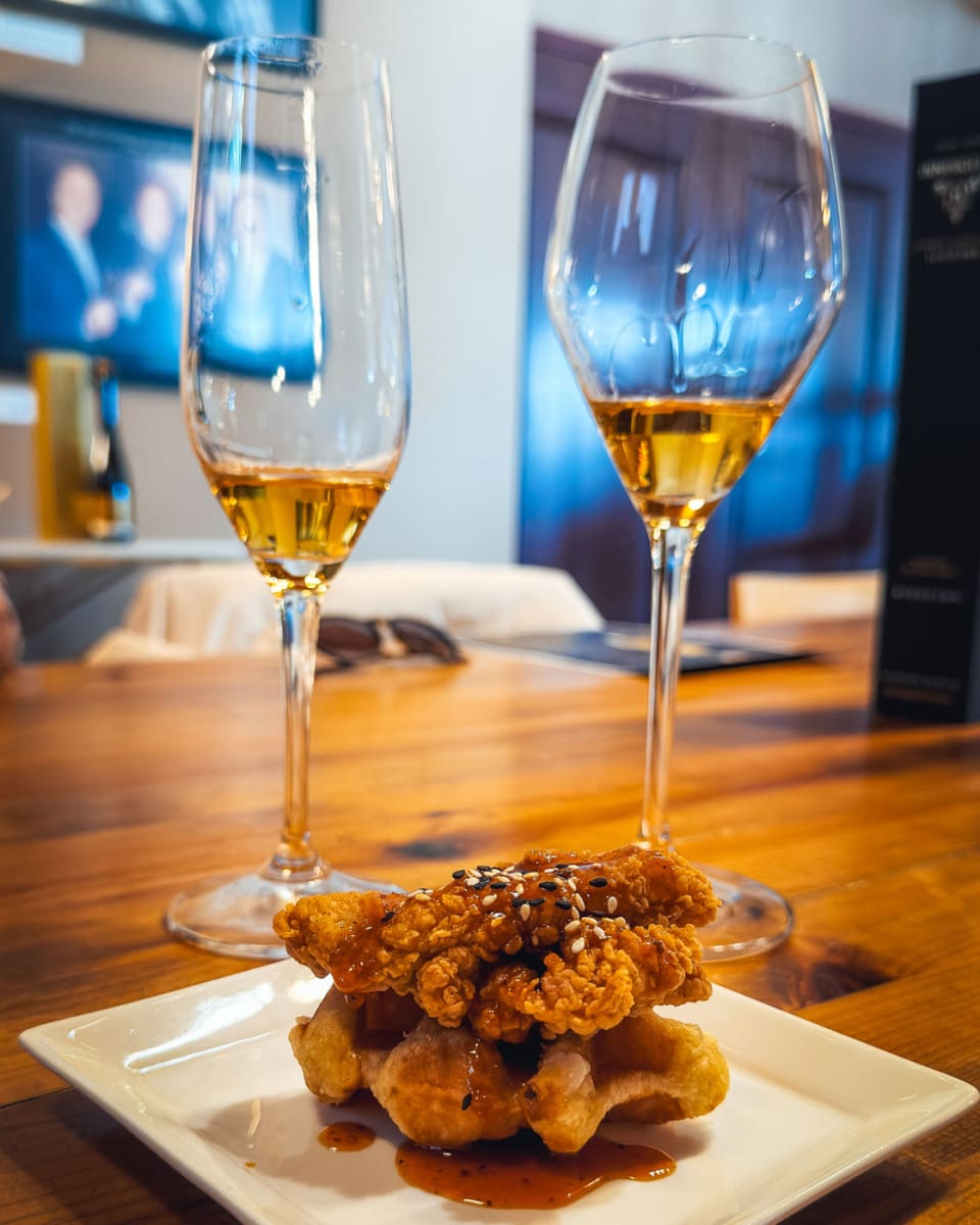 Besonders Inniskillin, Kanadas erstes Weingut mit eigenem Weingut, ist international bekannt für seine preisgekrönten Weine, allen voran der Vidal-Eiswein, der 1991 auf der Vinexpo 1991 in Bordeaux mit dem höchsten Preis (Grand Prix d’Honneur) ausgezeichnet wurde. Das Rundum-Paket und die Location haben uns von allen besuchten Weingütern am besten gefallen. Das Pairing war großartig.