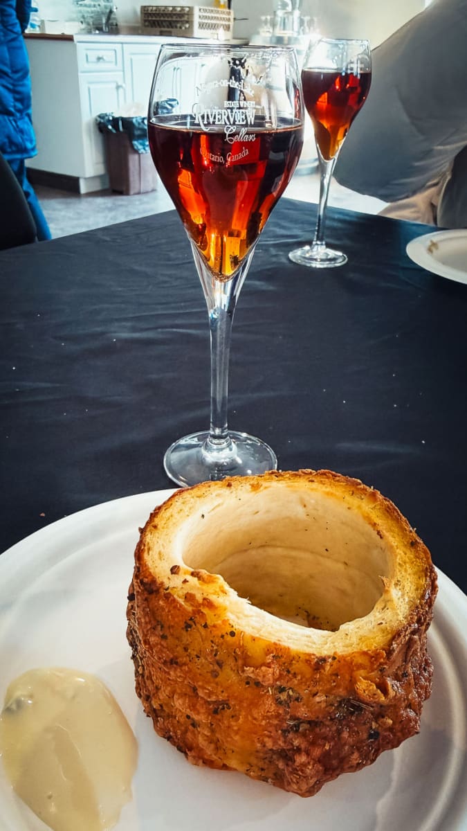 Die Frozen Falls Icewine Bar ist als Pop-up am Table Rock Bistro + Wine Bar sehr bekannt. Aufgrund des Wintersturms war diese leider geschlossen, darum haben wir im Bistro nachmittags eine köstliche Zwiebelsuppe gegessen.