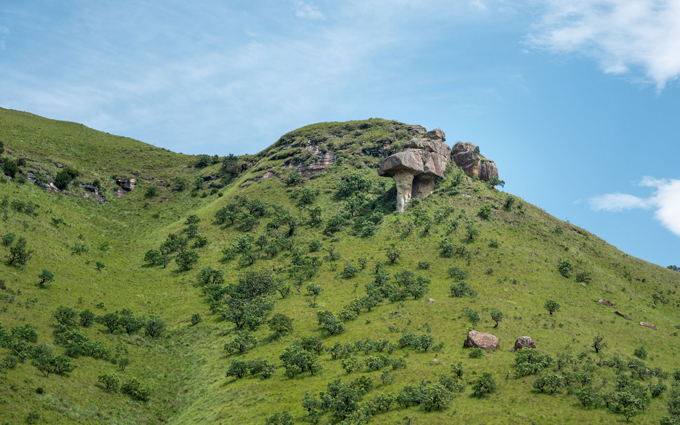 - 13.2.: Kurze Wanderung zum Mushroom Rock, danach Fahrt Richtung Norden zur Montusi Mountain Lodge.