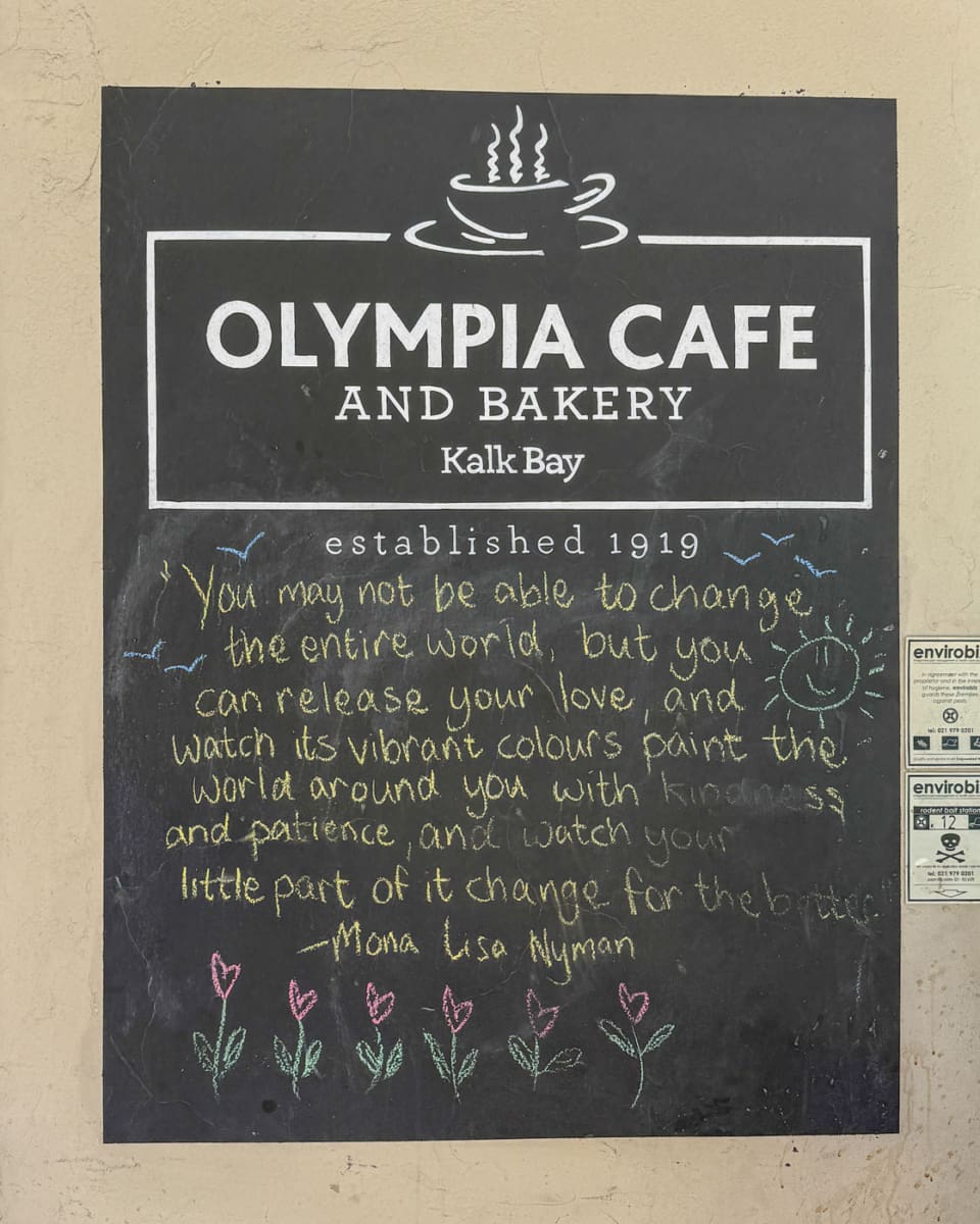 Das Olympia Café ist mein erster Stopp, jedes Mal wenn ich in Kalk Bay bin. Es liegt direkt an der Main Road, gegenüber vom Meer, und ist längst eine Institution.