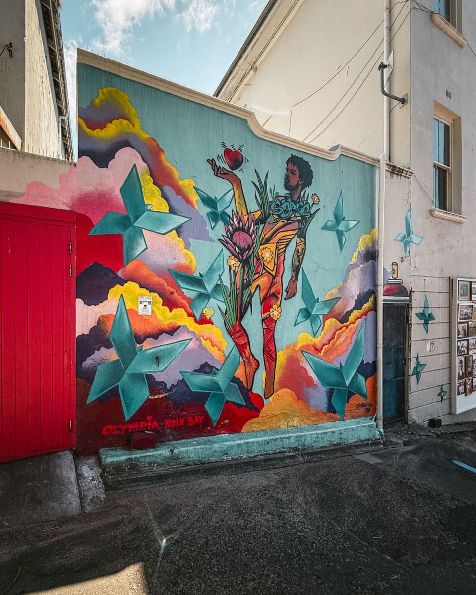 Direkt neben der Olympia Bakery findest du eine ungewöhnliche Outdoor-Galerie: eine alte Wand, die zur Ausstellungsfläche wurde. Initiatorin Keri Muller hat mit viel Eigeninitiative und Unterstützung von Künstlern aus der Region die Olympia Gallery ins Leben gerufen. Ihr Ziel: Kunst für alle kostenlos sichtbar machen.