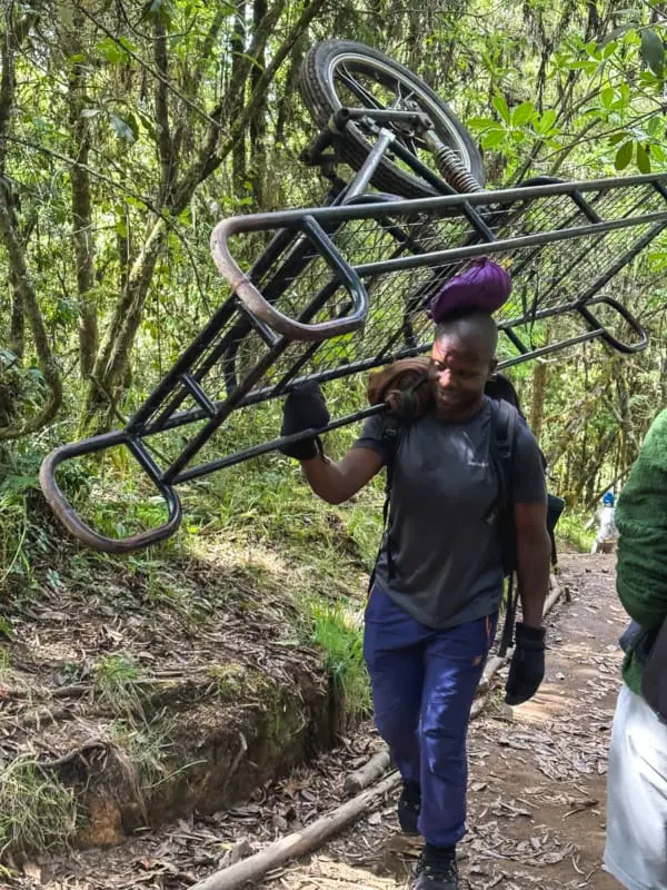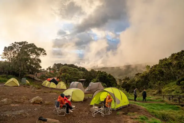 Etwa fünf Stunden, fast 13 Kilometer und etwas mehr als 2.000 Höhenmeter trennten uns vom Mweka Gate. Dabei überholten uns wieder unzählige Träger mit ihrem aberwitzig schweren Gepäck im rasanten Tempo.