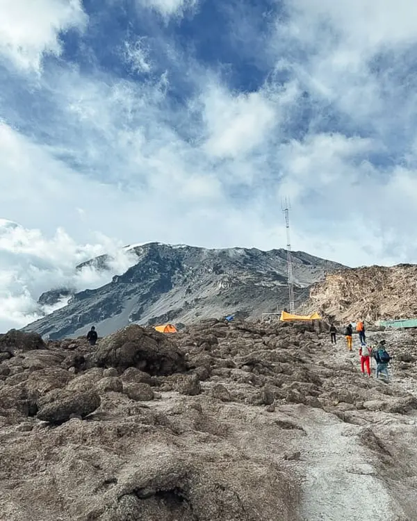 - Tag 4: Barranco Camp (3.900 m) – Karanga Camp (3.995 m, Mittagspause) – Barafu Camp (4.675 m)
