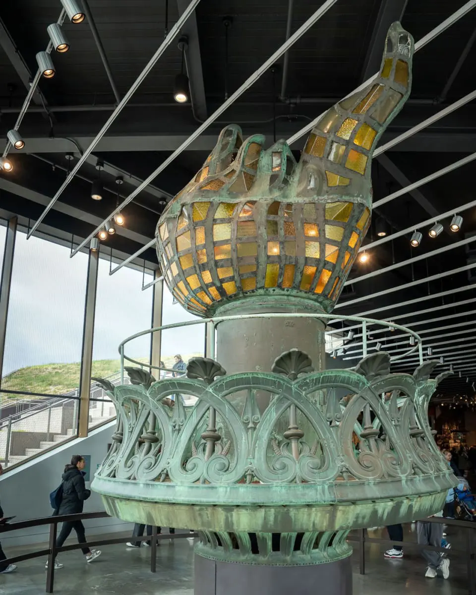 Im Statue of Liberty Museum hat die 1916 beschädigte Originalfackel von Lady Liberty seit 2019 einen Platz gefunden, nachdem sie davor jahrelang im Sockel der Freiheitsstatue zu sehen war.